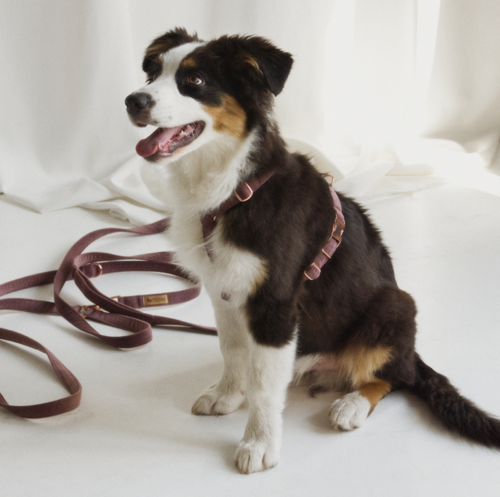 Materiał. Taśma nylonowa jest lekka, jednak szybko się brudzi i gorzej czyści. Biothane jest wodoodporny i trwalszy, świetny jeśli Wasz pies uwielbia kałuże i rzeki, za to akcesoria są bardziej śliskie i sztywniejsze w niskich temperaturach. Welur tapicerski świetnie sprawdza się na codziennych spacerach, brud i błoto po wyschnięciu „ześlizgują się” po małych włoskach na materiale, ale na pewno nie będzie dobrym wyborem dla psów, które na spacerach lubią pływać w wodzie.